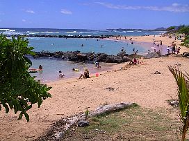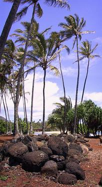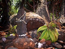 A strand északi részén a Waiula folyó halvány zöld árama torkollott a tengerbe. A folyóval párhuzamos utat, (580) a királyok útjának nevezték nem véletlenül, mert nem is olyan régen csak a királyok járhattak a hegy gerincén kialakított tisztáson. A folyó torkolatánál valamikor hét templom állt, melyek fontos ceremoniális események színhelyei voltak. Nem csak Hawaii nyolc szigetéről, de még a Polinéziai Szigetvilágból, pl. Tahitiről is elkenuztak ide. Mind a hét templomnak különböző volt a szerepe, pl. az egyikben emberáldozatokat végeztek, főképpen hadifoglyokat áldoztak fel, de békeidőben a köznépből származók voltak a szerencsétlen kiválasztottak, akiket a hóhér előző este titokban megfojtott. A másik templom a királyi "szülőotthon" volt, az összes jövendőbeli főnöknek/királynak itt kellett megszületnie. Az összkomfortot a hát és lábtámasztó vulkáni kő nyújtotta a kismamának. A hiedelem szerint, ha az egyik kövön hagyott köldökzsinórt patkány vitte el, akkor az újszülöttből tolvaj vált nagykorában. Ha a köldökzsinór a kövön maradt, akkor minden rendben volt. Az új főnök megszületését fémes hangzású kő (Bellstone) megkondításával jelezték, amit állítólag az egész folyóvölgyben hallottak. Ezekből a templomokból mára csak sötét kőkupacok maradtak, de sok őlakos szent helyként tiszteli őket. A Lydgate strand északi végénél levő egyik templom kövén terményáldozatokat és egy kagyló lei-t találtunk.