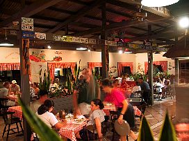 Este valami egyszerűt és gyorsan hozzáférhetőt akartunk vacsorázni, az útikönyvből kiválasztottunk egy helyiek által kedvelt pizzázót Kalaheo-ban. Itt nem fordul meg annyi turista, teljesen bensőséges és falusias volt a hely hangulata. A könyv szerint itt kapható a szigeten a legfinomabb pizza. Nem sokáig haboztunk a menü kiválasztásával, természetesen Hawaii pizzát rendeltünk. Érdekes, hogy itt egyszerűen csak ananászos sonkás pizzának hívták... :-)